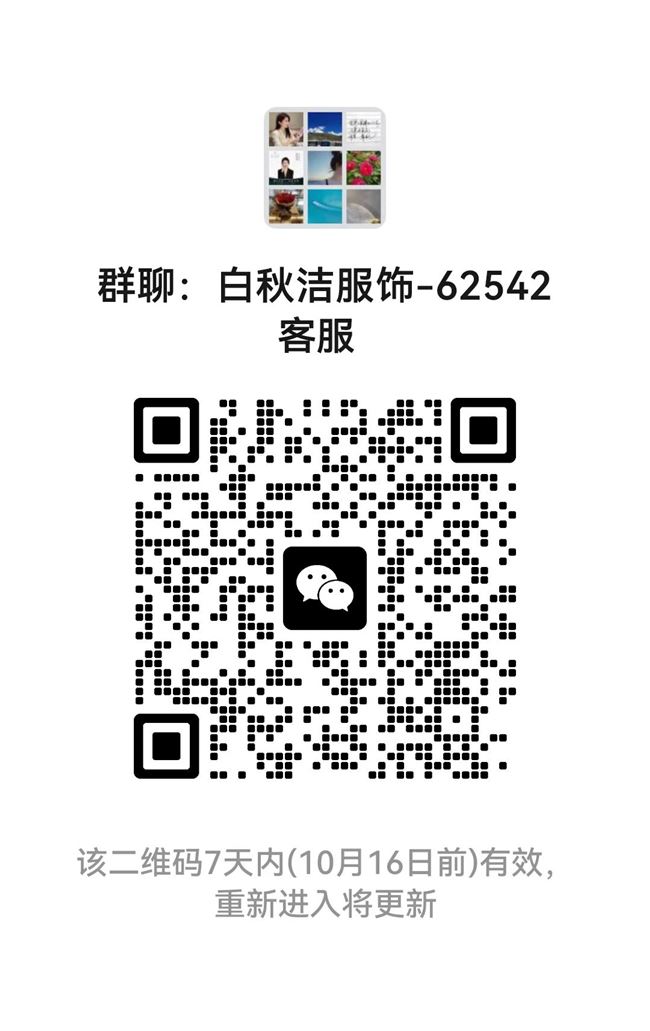 姐妹们,有喜欢漂亮衣物的私聊我,款式新颖 品质高档 ,一手货源,价格实惠,并且比淘宝,实体店便宜,性价比高,一起开启时尚美丽之旅!扫描下方二维码进福利群!